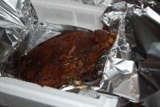 Heldigvis har vi pt en del flamingo kasser fra Skagenfood og en af dem blev brugt, til at ligge den indpakkede lammebov i. Smart ikke.Der stod lækker duft og varme op af kassen en time efter, da jeg åbnede kassen igen