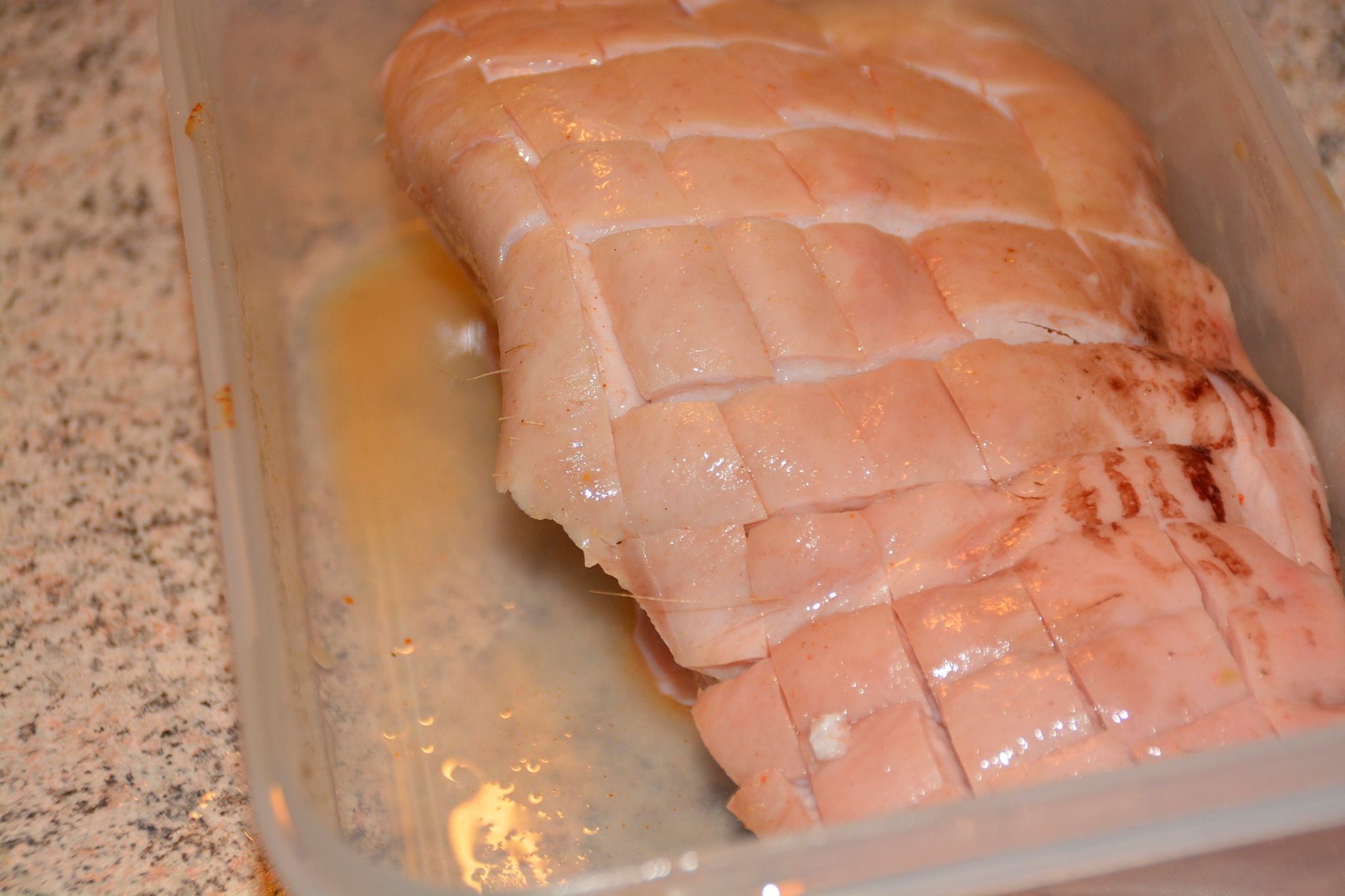 Kødet, som jo mest består af fedt, er rimelig sejt at komme en nål ned i, men pres løs, og du kommer ind.
