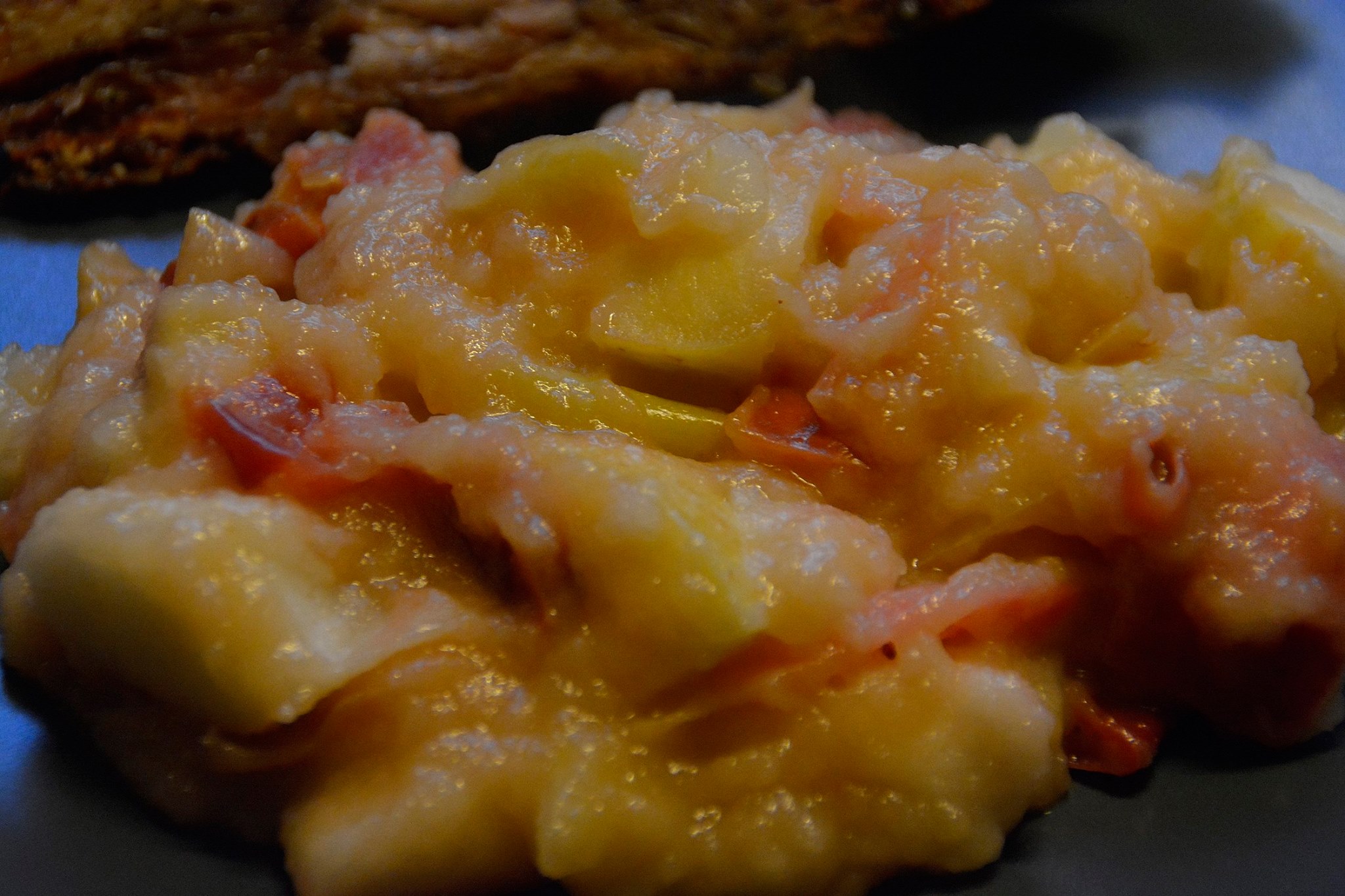 Mens kødet fik den sidste ½ time i grillen blev der lavet æbleflæsk af 750 gram æbler.