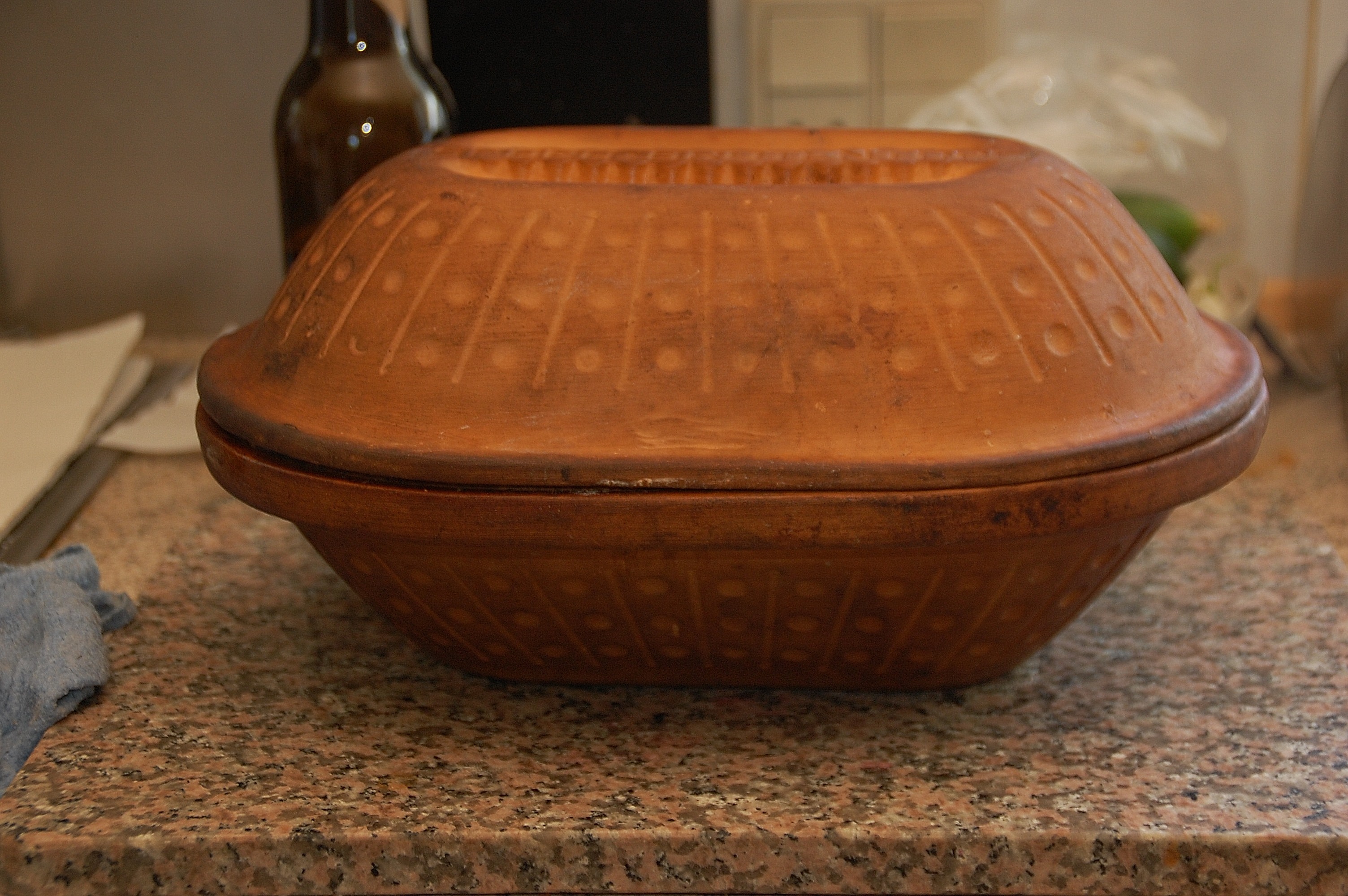 Da jeg skulle igang med at lave mad, kom jeg min römertopf i vand og gjorde ingredienserne klar.