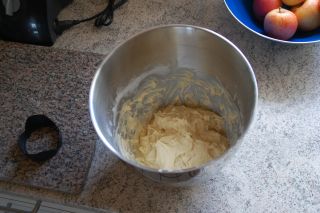 alle ingredienser vejes af og kommes i en skål, og æltes med dejkroge i ca 10 minutter.