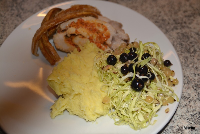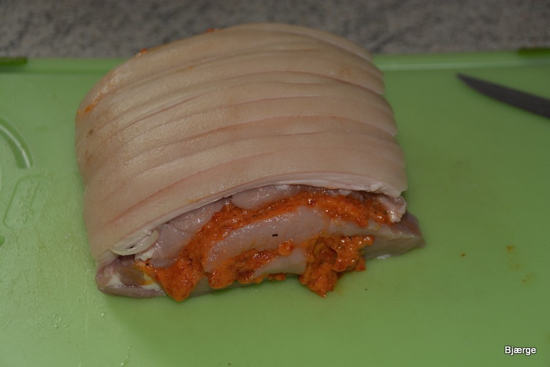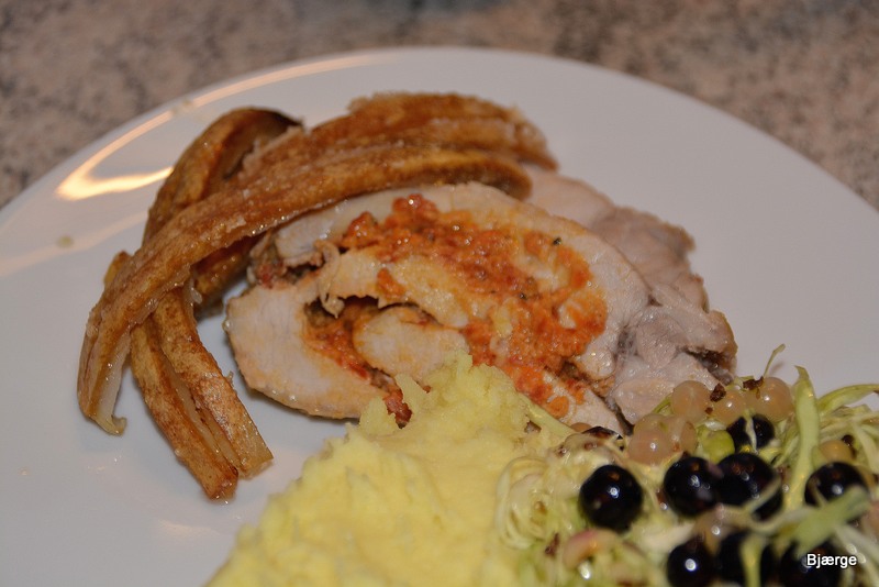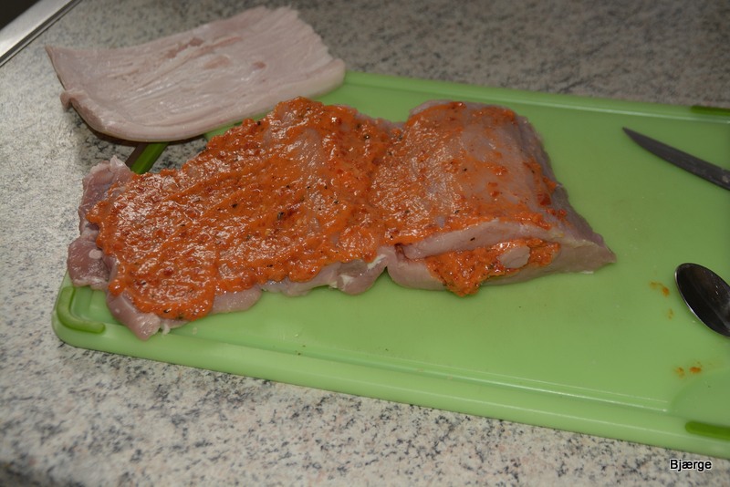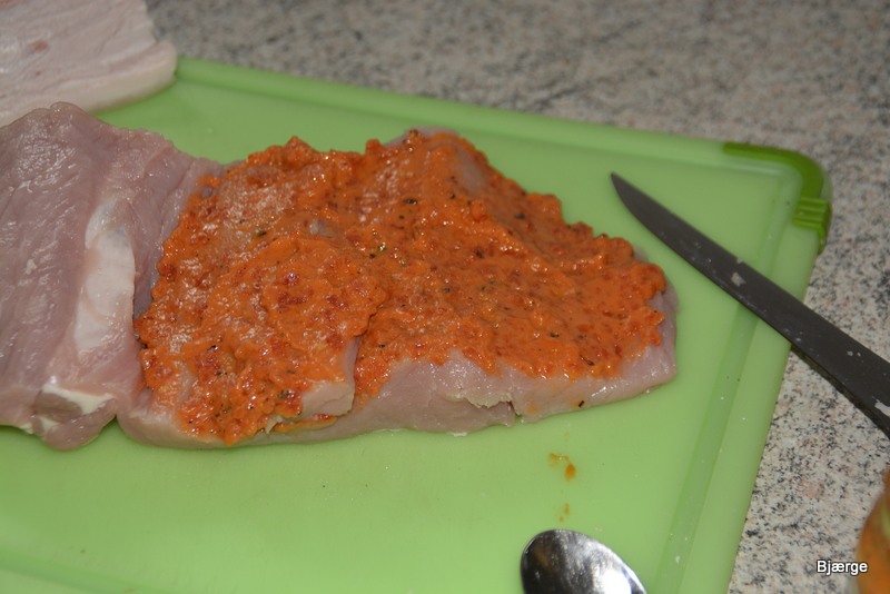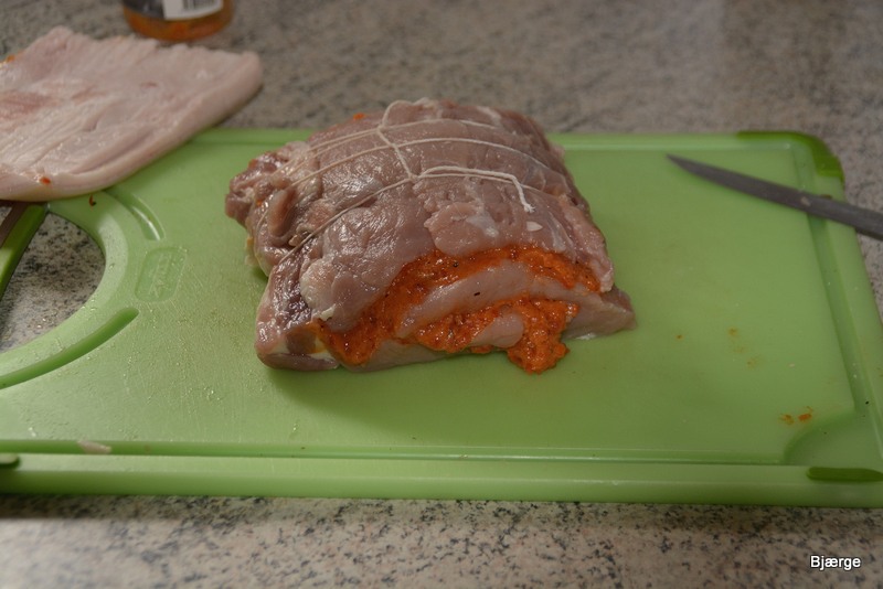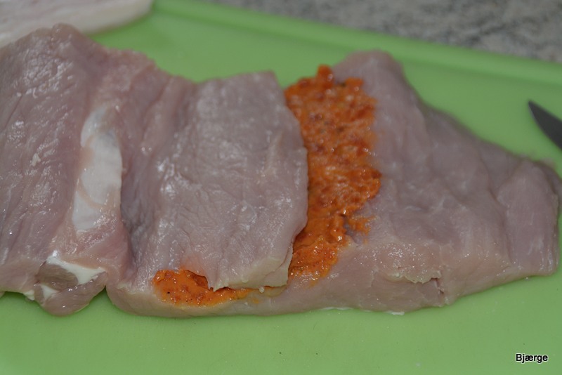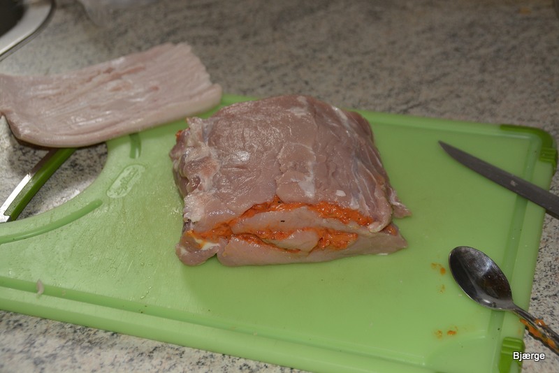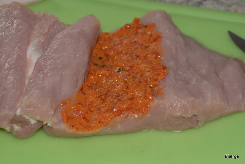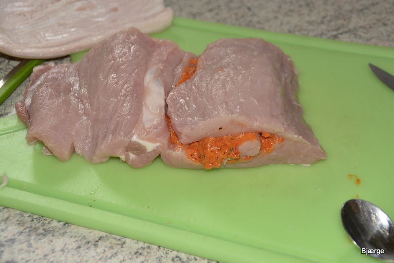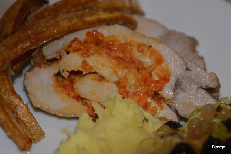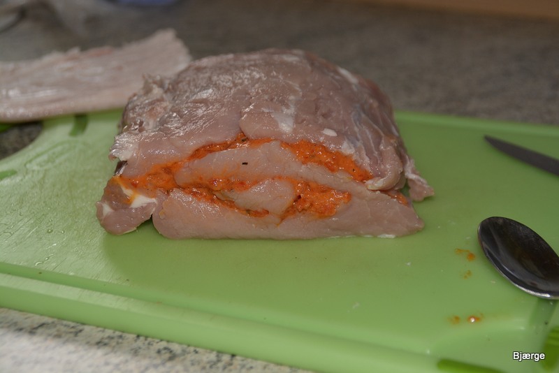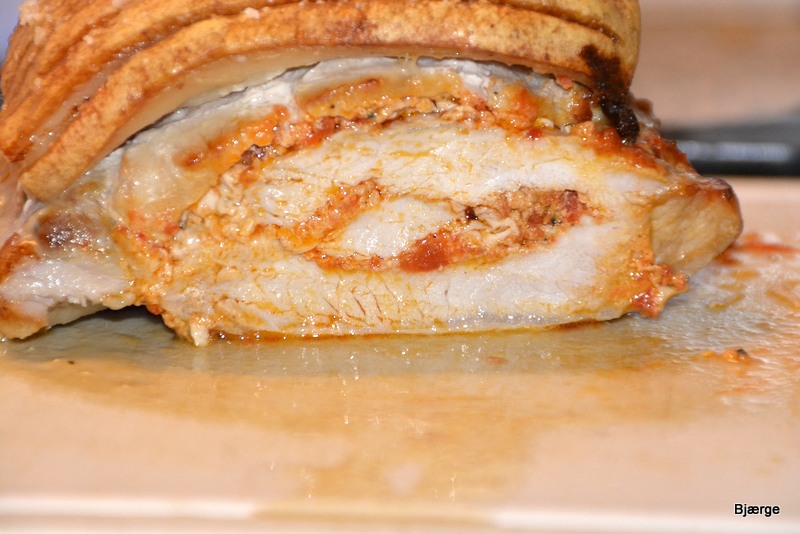 Og kødet lidt tættere på ….ja pestoen gled lidt ud under udskæringen, men smagte bare godt alligevel