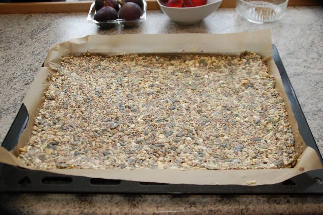 Tilsæt frø og kerner, til dejen er mere fast i det, men uden at blive tør.