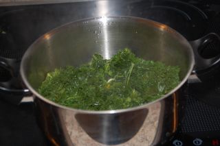 når det er helt klumpfri kommer du de hakkede grønkål i.