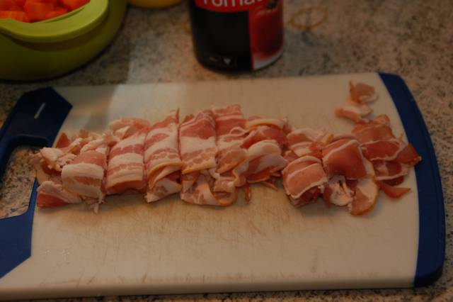 75 gram bacon i tern ( ½ pakke skive skåret passer fint)