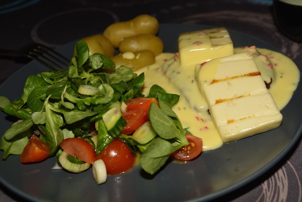 Imens blev en bearnaissesauce peppet op med lidt frisk hakket chili, og så kunne vi spise