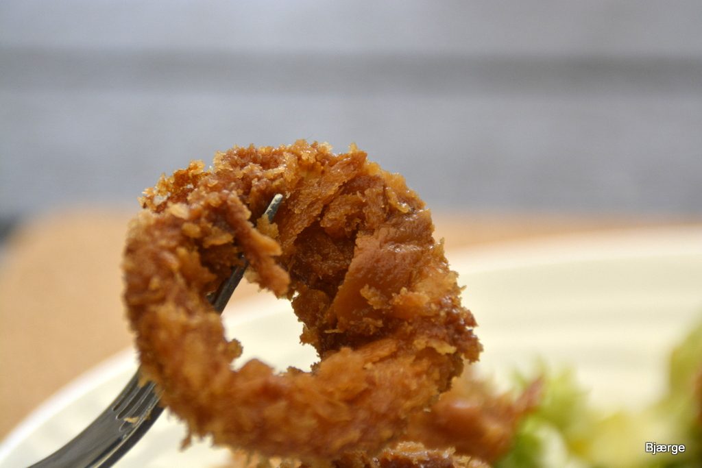 Jeg valgte at lave sprøde løgringe til bøffene og den opskrift finder du her