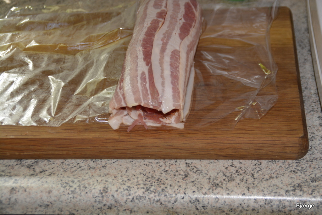 Men sikre dig, at du fortsat kan rulle det hele sammen , således der er bacon hele vejen rundt.