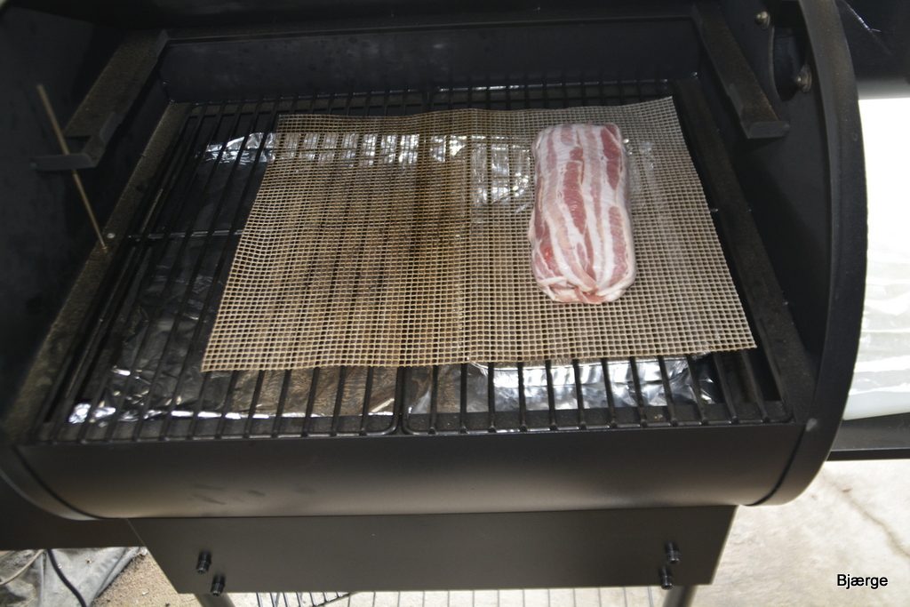 Jeg valgte at sætte pillegrillen til 180 grader og lagde for en sikkerheds skyld et net jeg engang har købt oven på ribberne.