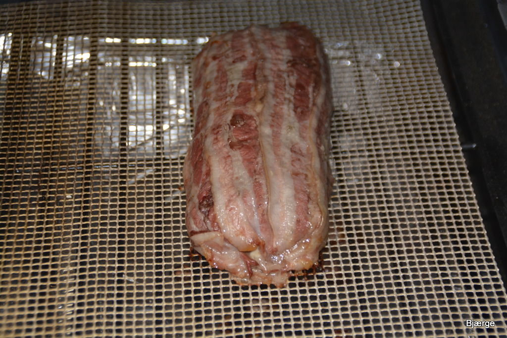 Hvis du vil have bacon mørkere, kan du give rullen 15 minutter ved 180 grader og derefter stille grillen til max temperatur i yderligere 10-15 minutter
