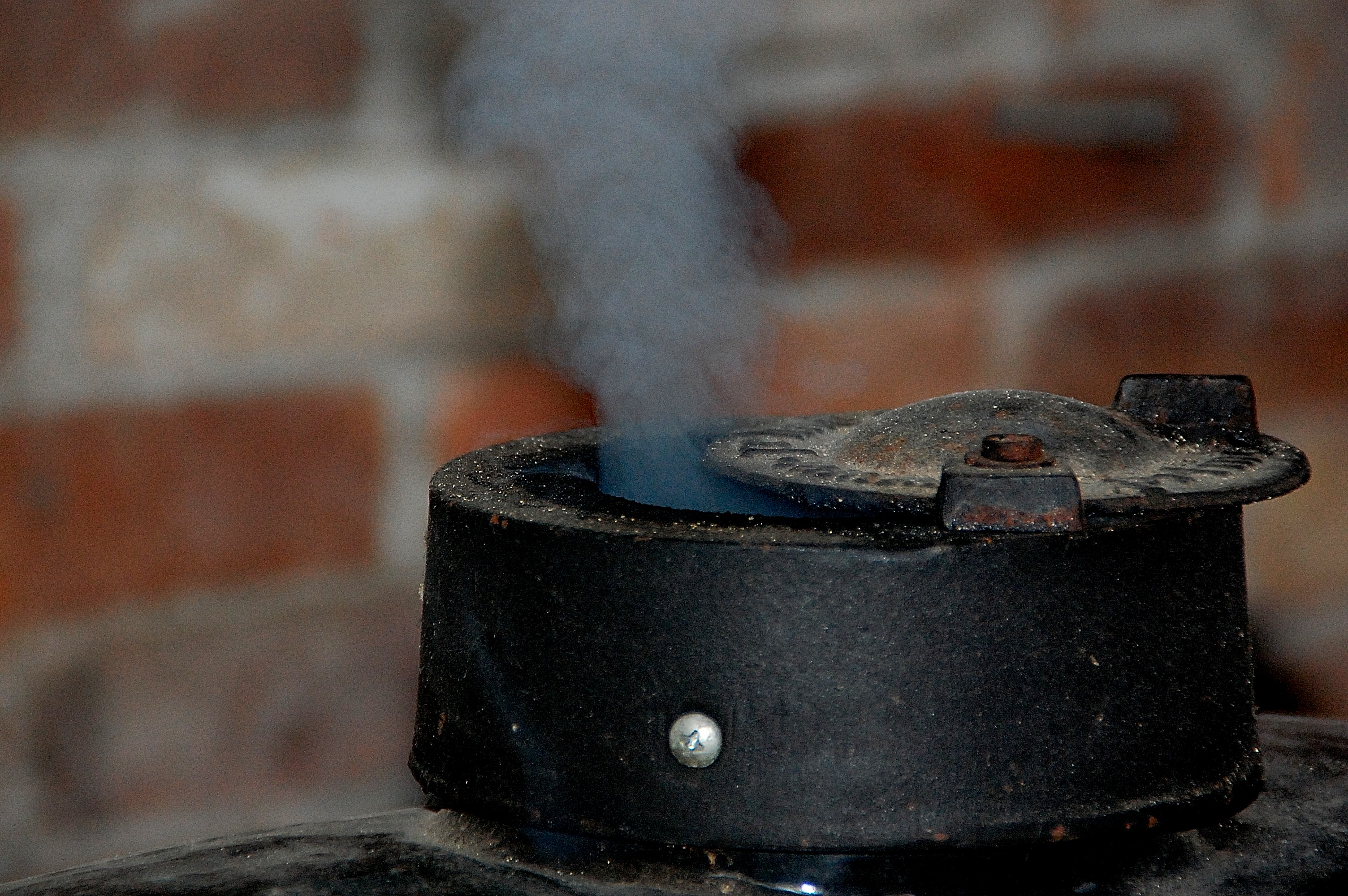 I morges blev kamadogrillen pakket med kul og flis så kødet kunne blive røget godt og grundigt.