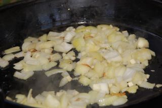 Nu kommer du først lidt fedtstof på panden og tilsætter løg og hvidløg