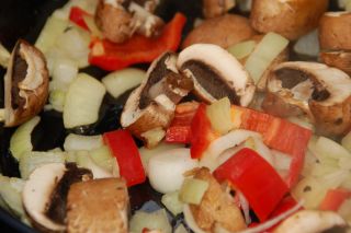 Idag blev det mark champignon lidt peberfrugt og en rest forårsløg.