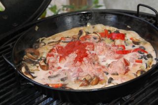 Har man ikke lige gourmet panden, kan man gøre sådan ( jeg brugte panden fra citygrillen til at vise det med)