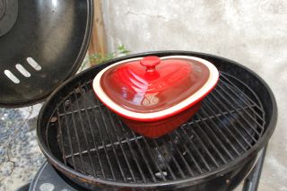 Vend tragten til indirekte varme og sæt varmen til 200 grader, kom låget på fadet og giv det 45 minutter på grillen