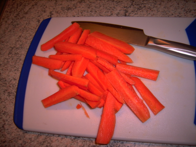 Jeg kom gulerødderne i kogende vand og gav dem 5 minutter og det var perfekt:PICT3303.JPG