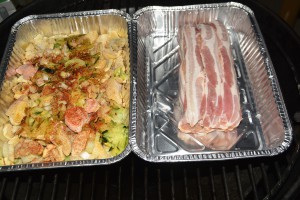 Ude på grillen blev de sat på ved ca 200 grader INDIREKTE varme i ca 40 minutter