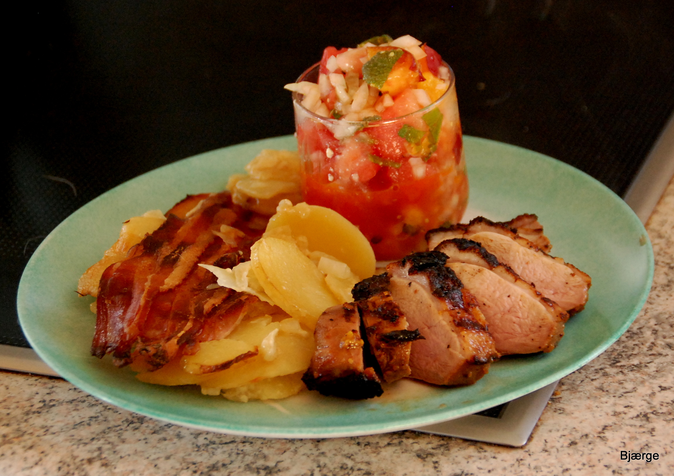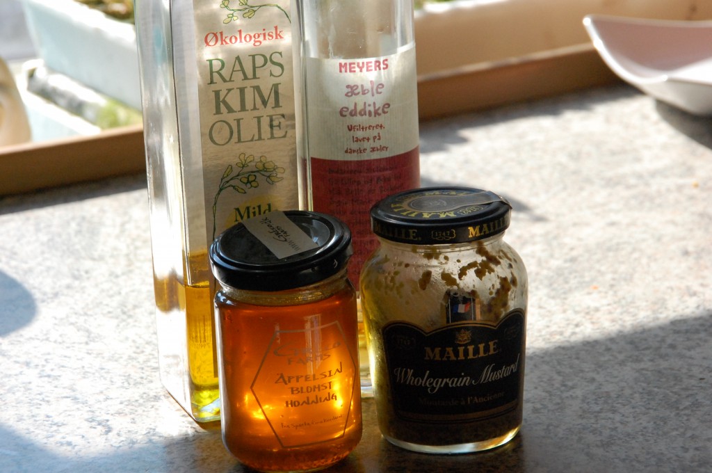 Blandede ingredienserne sammen, og hældte en marinade over, der var pisket sammen af: