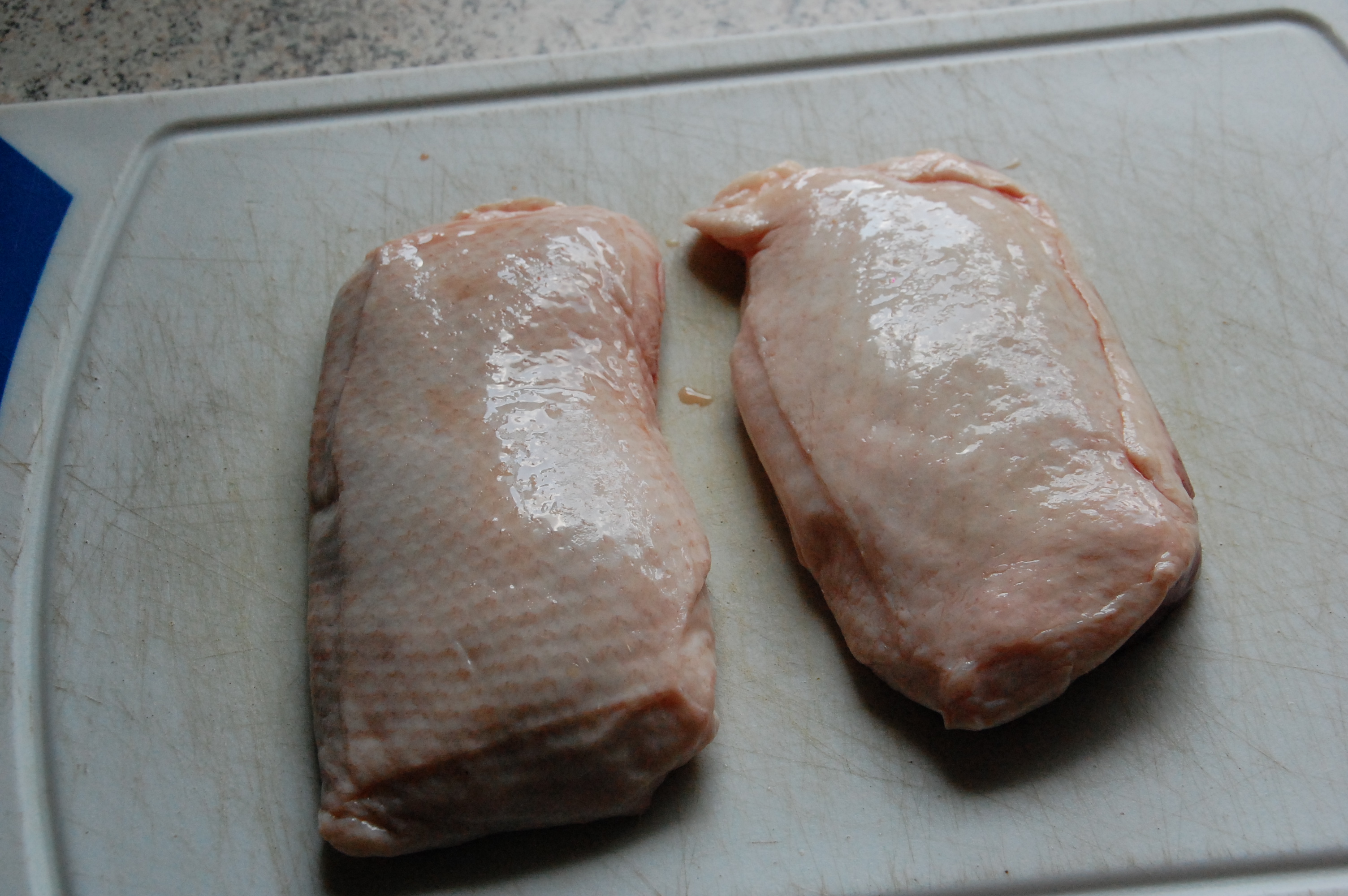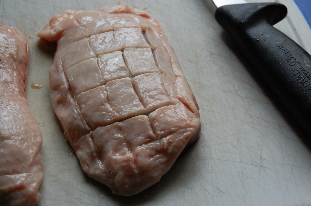 Jeg havde taget et par andebryster op af fryseren og gav dem nogle rids