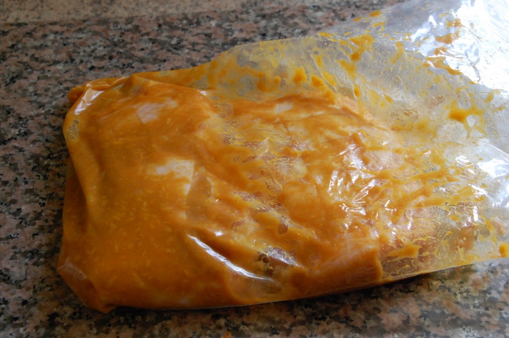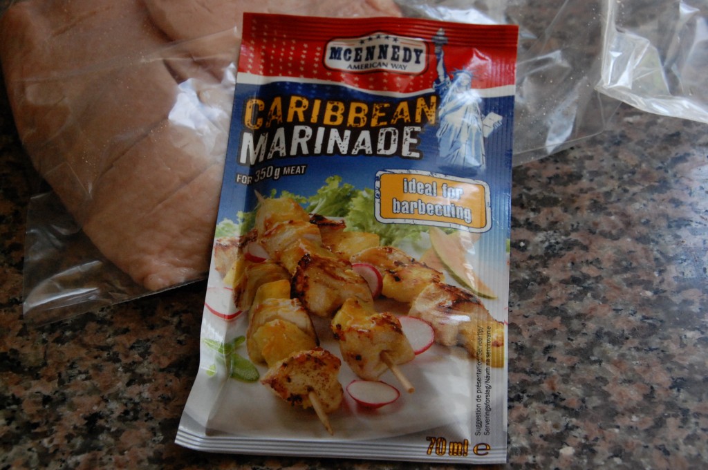 På en tur i Lidl i mandags fandt jeg denne marinade til 4 kr og den kom jeg brysterne i.