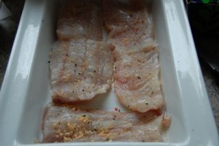 lægges i et ildfast fad, krydres med salt og peber og overhældes med den varme karryfløde grøntsagblanding.