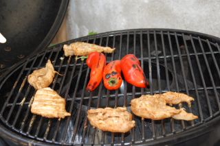 Så snart kød og peberfrugter var grillet blev de taget af.